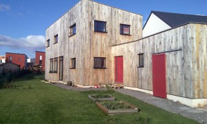 Lieu : Combourg(35) – 20012 / 14 Une maison en ossature bois « douglas », avec une isolation en panneaux de laine de bois, pré-fabriqué en atelier, et assemblé sur le terrain en une journée. Dalle en béton de chaux et avec un hérisson en mousse de verre expansé. Menuiserie mixte (pin/alu) + triple vitrage argon, plancher bois. Un mur et un muret de masse constitué de torchis et d’adobe pour l’inertie.* […]